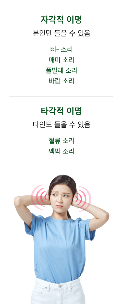 이처럼 외부의 소리 자극이 없는데도 귀 또는 머릿속에서 느끼는 소리를 ’이명’이라고 합니다.