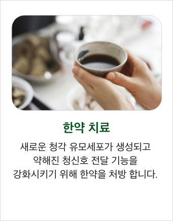 한방치료를 병행하여 청력개선과 회복 속도를 높입니다.